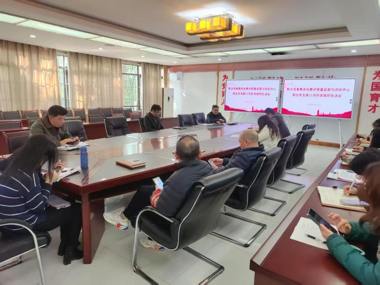 2025年11月28日,机关党委教务处教学质量监督与评估中心联合党支部在厚德楼1018会议室召开11月份组织生活会。会议由党支部书记胡卫军同志主持,支部全体党员参加学习。